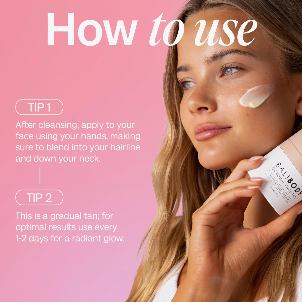 Achieve a flawless, sun-kissed complexion with BALI BODY Gradual Face Tan. Order yours today and experience the beauty of a natural-looking tan!