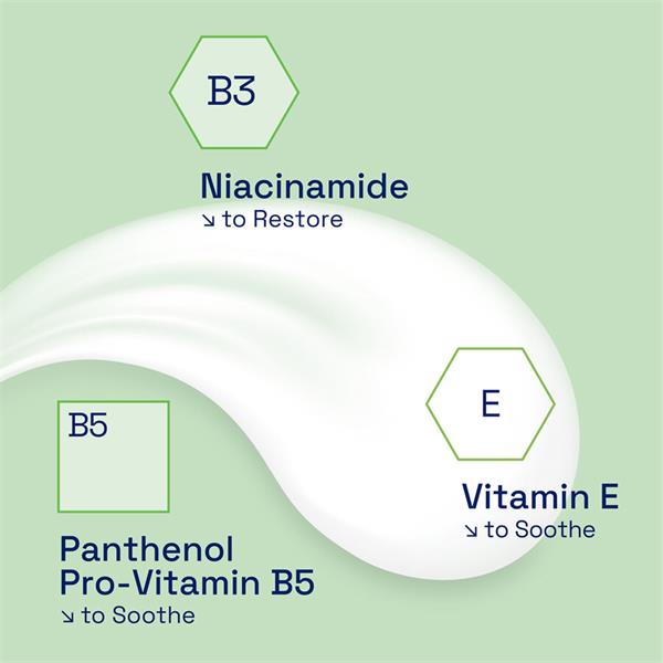 This rich cream with Sweet Almond Oil is clinically proven to nourish skin in just 1 day and helps to repair the skin's natural moisture barrier in just 1 week for immediate and long lasting relief. Leaves skin feeling smooth, soft and comfortable. With Niacinamide, Panthenol and Vitamin E.