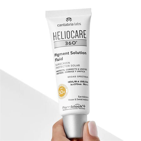 A light fluid that not only provides high levels of protection, but also features a Depigmenting System to help lift and prevent hyperpigmentation. The system combines Niacinamide which helps to prevent the transfer of melanin in skin cells and Ellagic Acid which helps to reduce melanin production. This silky fluid also has a subtle tint, so it not only melts into the skin but also helps to unify the skin tone and mask patches of pigmentation. The tint is suited to skin Fitzpatrick I-IV. Heliocare 360° Pigment Solution Fluid also features a ‘second skin’ which not only helps to lock in moisture, but also protects the skin at its surface from pollution.