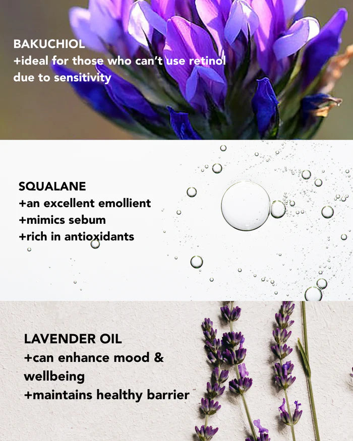 - Enriched with Bakuchiol, a multitasking plant-based alternative to retinol