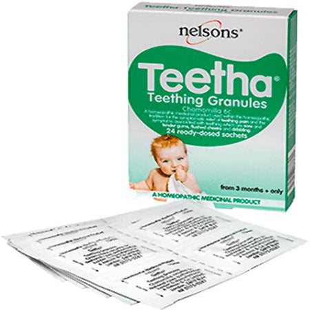 If you are having a sleepless night as a result of a grizzly, teething baby, then why not try Nelsons Teetha® Teething Granules. Teetha® Teething Granules is a homeopathic medicinal product used within the homoeopathic tradition for the symptomatic relief of teething pain and the symptoms associated with teething which are sore & tender gums, flushed cheeks and dribbling.