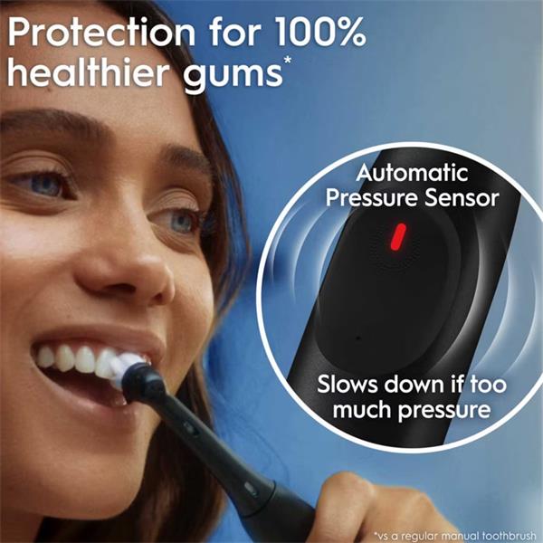 - Protect your gums with the built-in Pressure Sensor. If you brush too hard, the iO2 automatically slows down and alerts you, preventing potential gum damage. This is vital for those with sensitive gums.