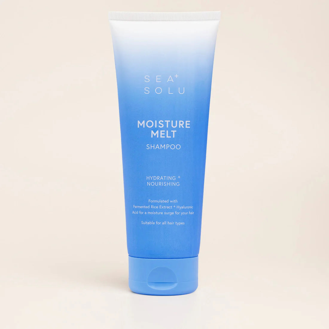 SEA+SOLU's Moisture Melt Shampoo is an ultra-hydrating, sulfate-free shampoo combining strengthening proteins and rich emollients to deeply nourish and protect dry, damaged hair. Ideal for all hair types. It restores moisture, repairs damage, and prevents future breakage. Vegan and cruelty-free.