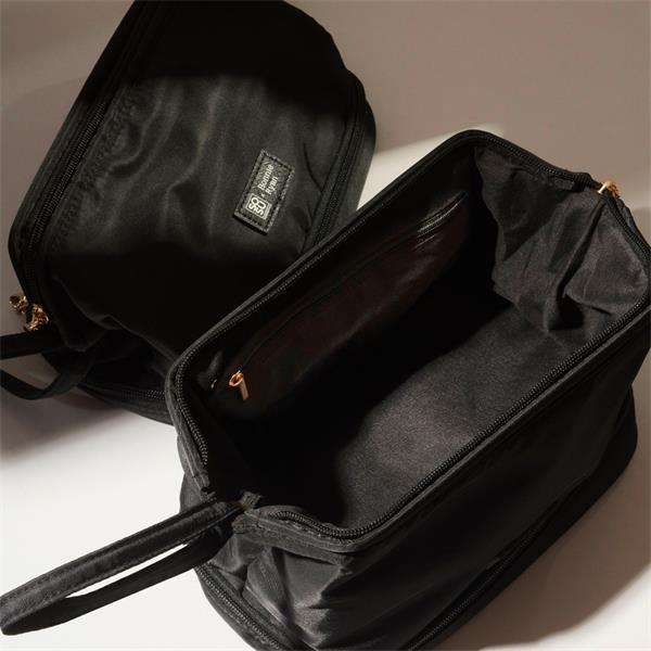 Elevate your makeup organisation with the SOSU x Bonnie Ryan multi-compartment makeup bag. Crafted with a sleek nylon finish and adorned with gold metallic hardware, this bag exudes luxury. Its thoughtful design includes a dedicated brush compartment at the bottom, ensuring your brushes stay clean and organised. The wide top opening provides effortless access to all your cosmetics, making it easy to find and use your favourite products. Additionally, hidden secret compartments offer extra storage space for your beauty essentials. Stylish and practical, this makeup bag is a must-have accessory for every makeup enthusiast, combining fashion and functionality seamlessly.