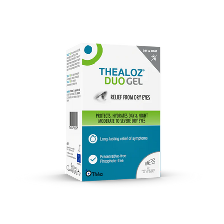Thealoz Duo Gel Eye are clinically proven* and 100% preservative free eye drops suitable for more severe dry eye or for night time use as they combine both long-lasting relief and protection for the surface of the eye, with a carbomer gel which gives added staying power.