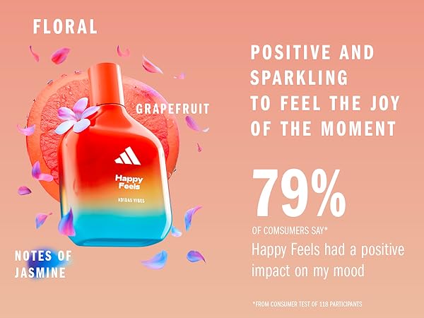 Feel the vibe and feel uplifted with Adidas Vibes Happy Feels Eau de Parfum. Proven to make you feel positive*, this uplifting and sparkling fragrance helps you feel the joy of the moment just like in those happy summer days.