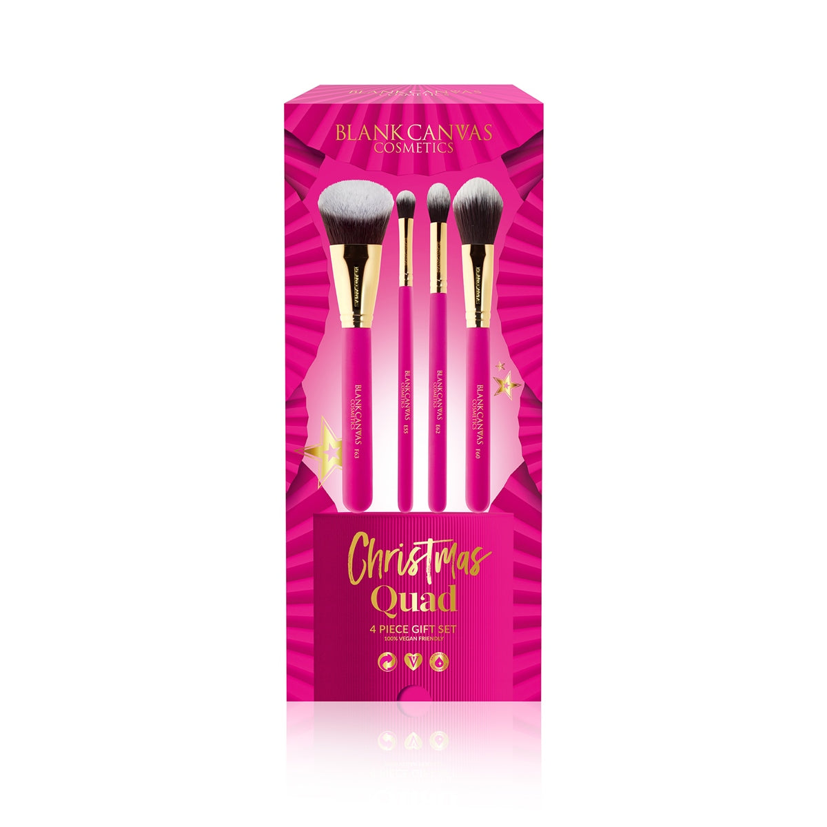 4 fantastic multi-purpose face and eye brushes in a soft touch fuchsia handle and gold ferrule.