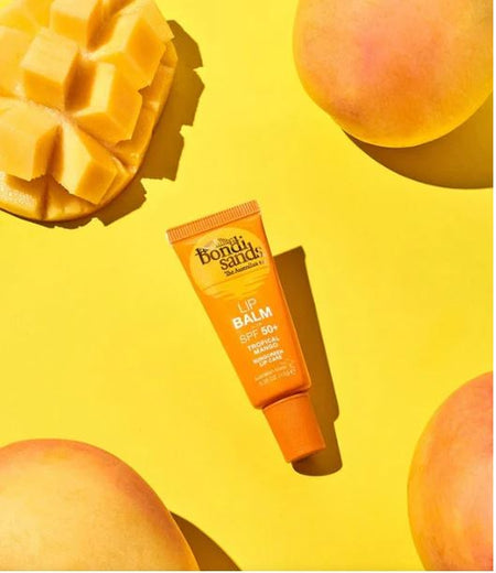 - Tropical mango lip balm with SPF 50+ is perfect for all skin types