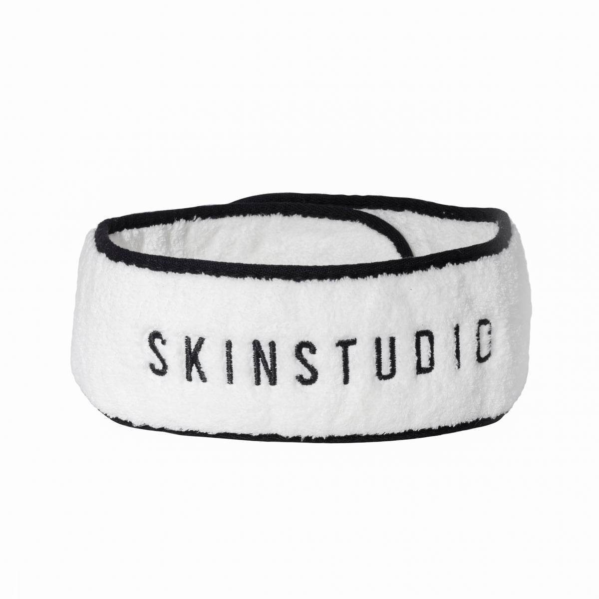 A soft comfortable headband designed with a velcro strap to hold back hair securely & elevate you SKIN STUDIO skincare routine.