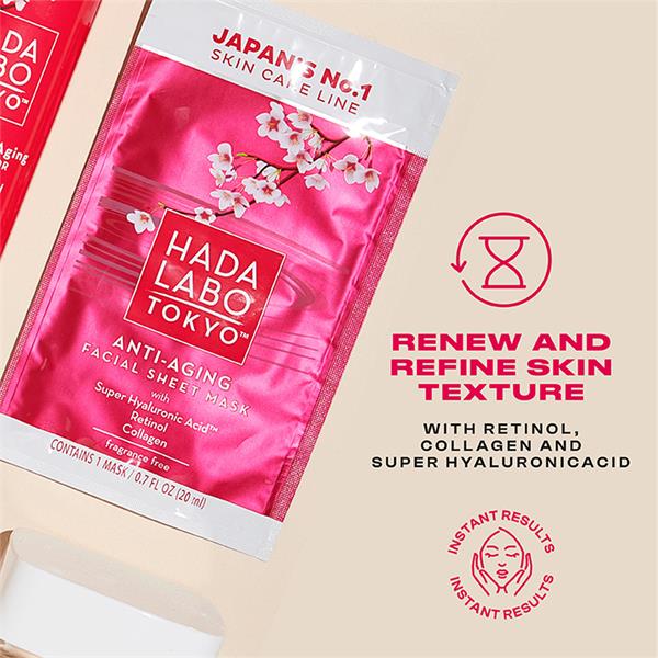 - Hada Labo Anti-Aging Sheet Mask **Retinol** supports skin renewal and reduces pigmentation