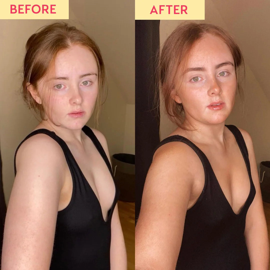 Meet our award-winning He-Shi Express Liquid Tan. Winner of Cosmopolitan's "Best Self Tanning Product", this incredibly hydrating, lightweight liquid formula gives a medium tan lasting 7 to 10 days.