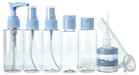 The Joelle by Calco 10 Piece Travel Set is a lightweight clear bag that includes bottles of all sizes for your shampoos, body washes and other liquids. The stylish and colourful watermelon keeps everything safe when you're on the go!