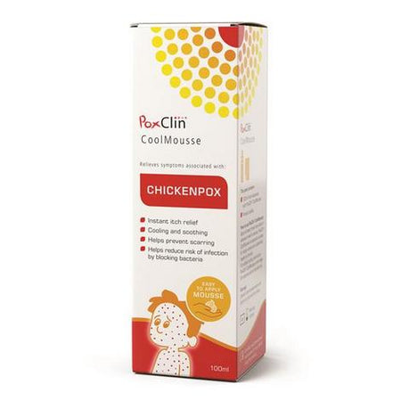 Poxclin Chickenpox Relief Cool mousse is formulated to relieve the itch associated with chickenpox and to prevent scars.