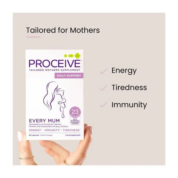 Motherhood is a marathon, not a sprint. Proceive® Every Mum is designed to support the unique needs of mums who are juggling it all. The first product of its kind designed specifically to cater to the nutritional needs of busy mothers, Every Mum provides targeted support for Energy, Immunity and Tiredness.