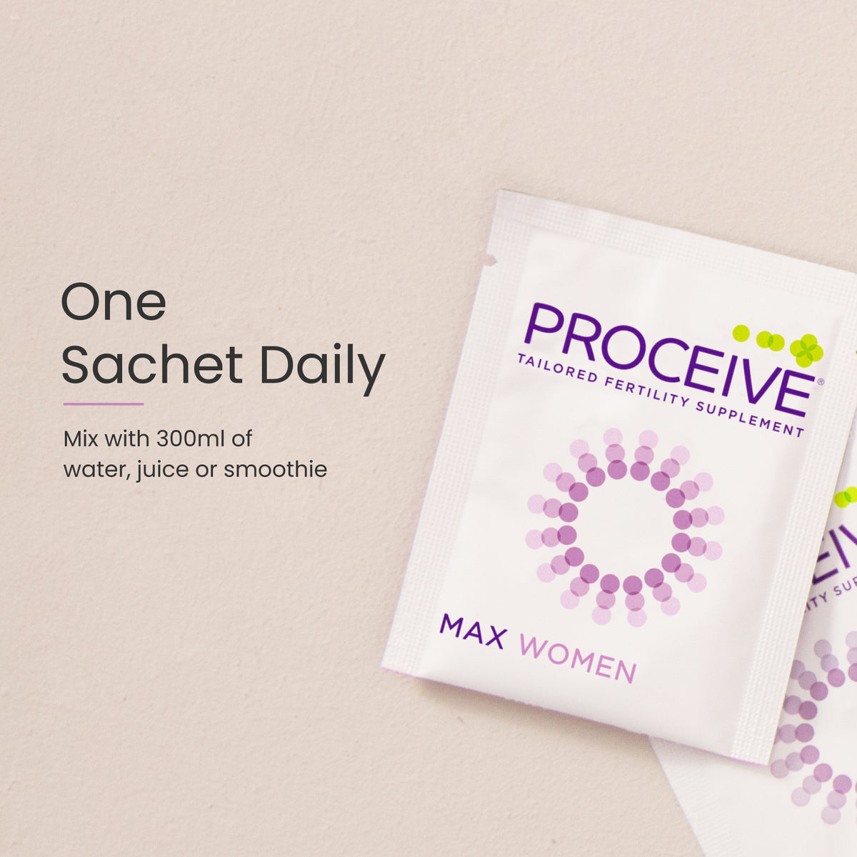 Proceive® Max Women is tailored to support the nutritional needs of women over 35 when trying for a baby as well as those aged between 18 and 35 who have been trying to conceive a year or more.