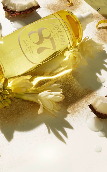 The refreshing scent combines creamy coconut milk with warm, earthy nuances of sand, uplifted by crisp white florals at the heart. A dry down of vanilla lends a sweet fragrance, wrapped in rich amber for a tantalising finish.